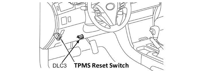 Within 30 seconds of turning the ignition ON, press and hold the tire pressure warning reset switch until the tire pressure warning light blinks 3 times at one-second intervals. See Fig 2Fig 3NOTE: Wait 2-3 minutes, with the ignition ON, for the initialization process to complete. If the initialization has not been completed successfully, DTC C2177/77 is set about 20 minutes after driving starts.
