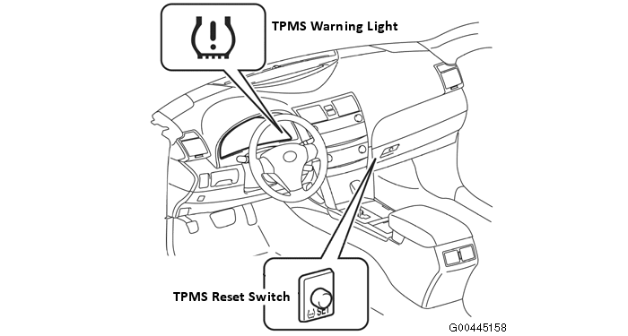 Set tire pressure within the specified range before initializing. DO NOT push the reset switch without adjusting tire inflation pressure of all 4 tires. Otherwise, the low tire pressure warning light may not come on even if the tire pressure is low, or it may come on when the tire inflation pressure is actually normal. If you push the reset switch while the vehicle is moving, initialization is not performed.