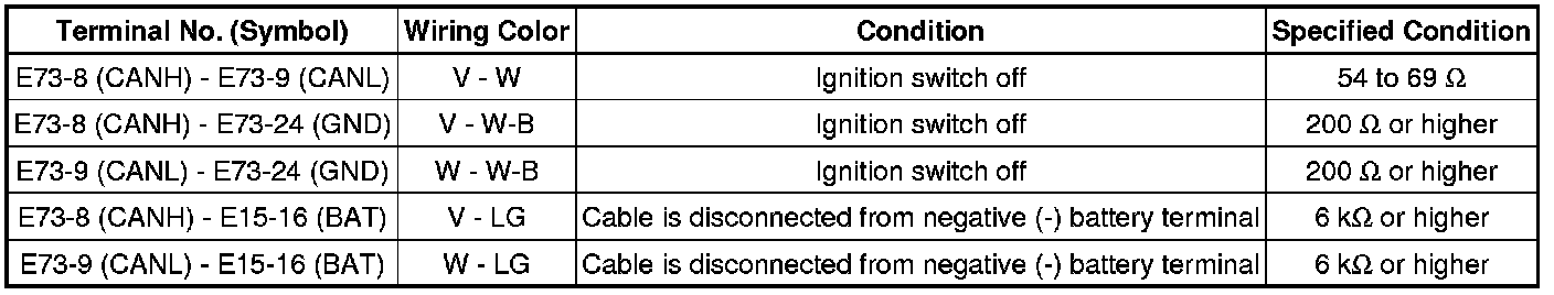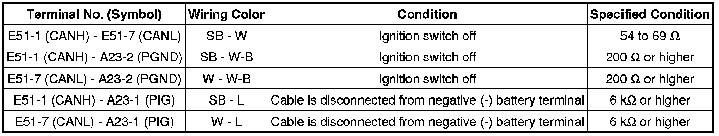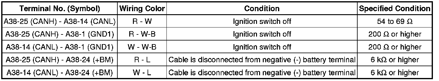 * Turn the ignition switch off before measuring the resistances of the CAN bus main wires and the CAN bus branch wires.