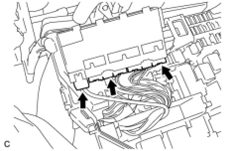 (b) Using a screwdriver with its tip wrapped in protective tape, disengage the 2 claws and then pull the integration relay out of the No. 1 relay block.