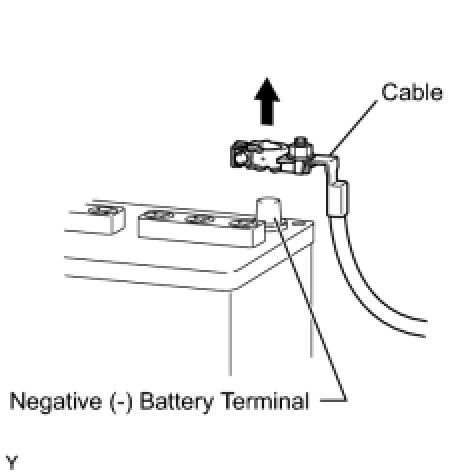 (c) When the battery cable is disconnected, the clock and radio settings and stored DTCs are cleared. Therefore, before disconnecting the battery cable, make a note of the settings.