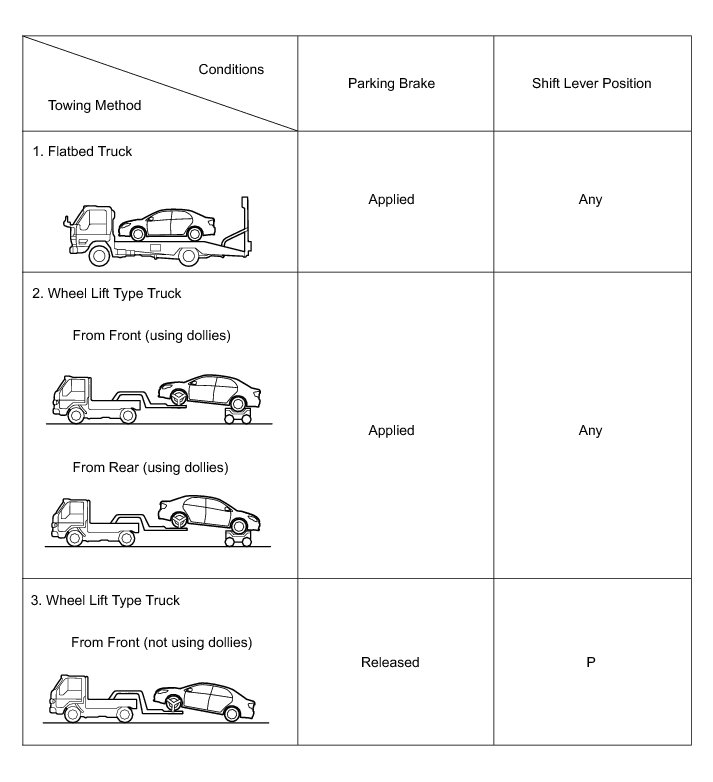 * If the vehicle is towed facing rearward with the front wheels on the ground, the drivetrain may overheat and be damaged.