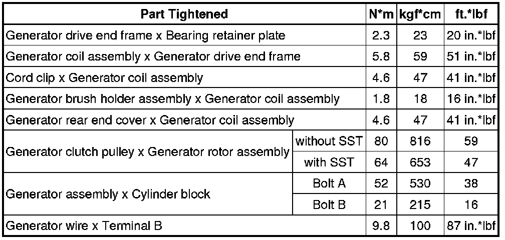SPECIFICATIONS: 2AZ-FE BATTERY / CHARGING: TORQUE SPECIFICATIONS