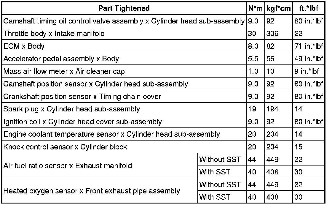 SPECIFICATIONS: 2AZ-FE ENGINE CONTROL: TORQUE SPECIFICATIONS