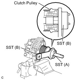 (e) Fit SST (B) to the clutch pulley.