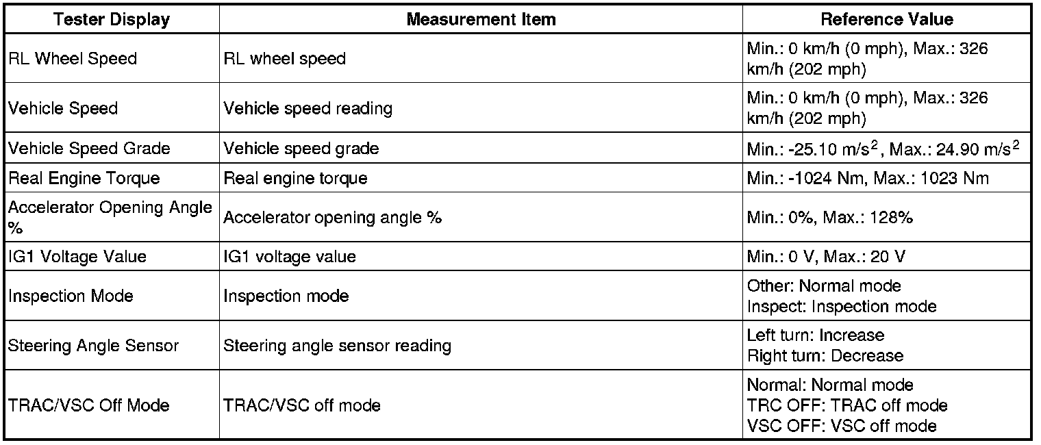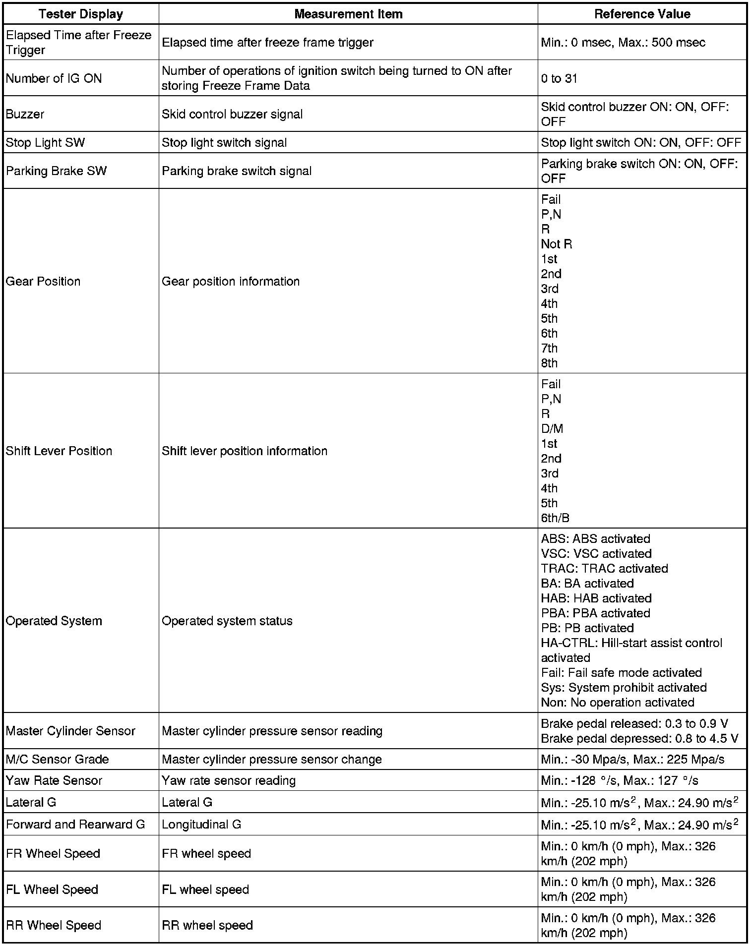 BRAKE CONTROL / DYNAMIC CONTROL SYSTEMS: VEHICLE STABILITY CONTROL SYSTEM (for 2ZR-FE): FREEZE FRAME DATA