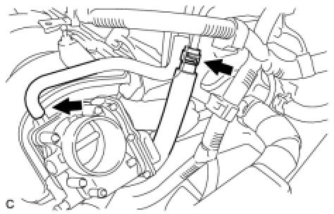 (h) Connect the 2 water by-pass hoses and the throttle body connector.