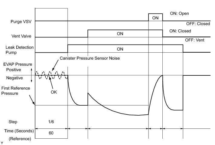 (b) Compare the EVAP pressure in step 3/6 and the second reference pressure (step 5/6).