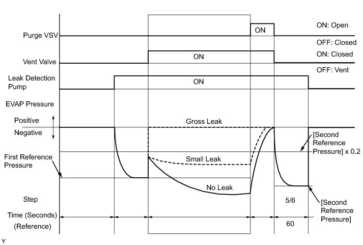 If the reference pressure difference between the first and second checks is more than the specification, all the DTCs relating to the reference pressure (P043E, P043F, P0441, P0455, P0456, P2401, P2420) will all be stored.
