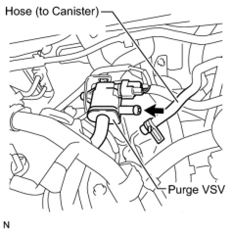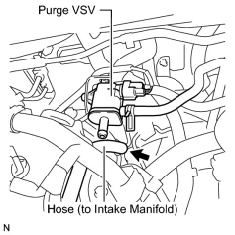 (a) Disconnect the hose (connected to the intake manifold) from the purge VSV.