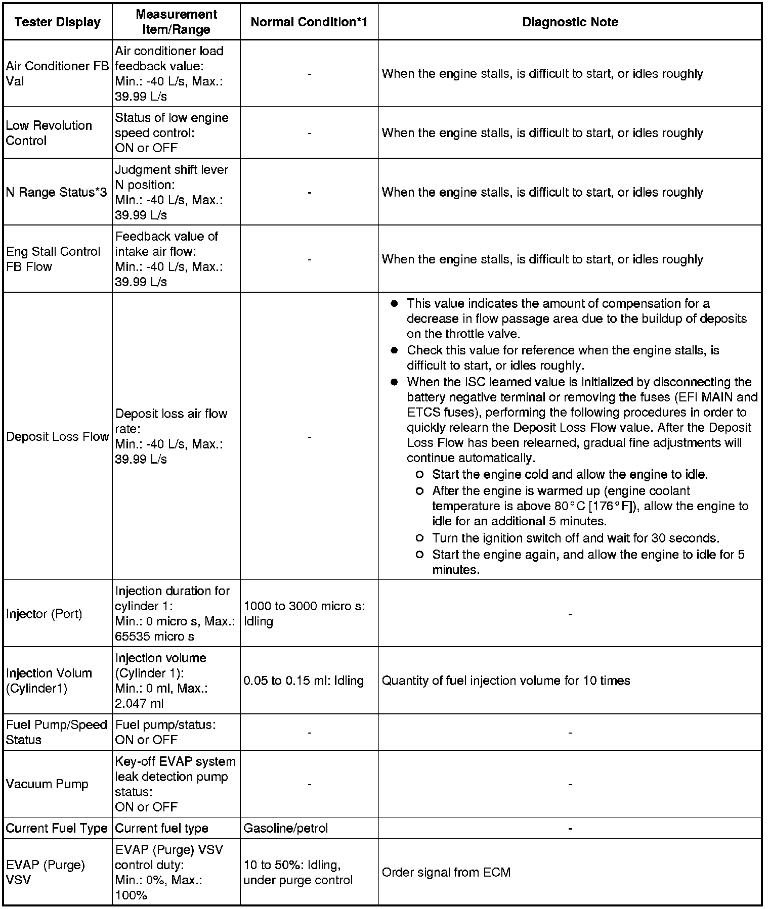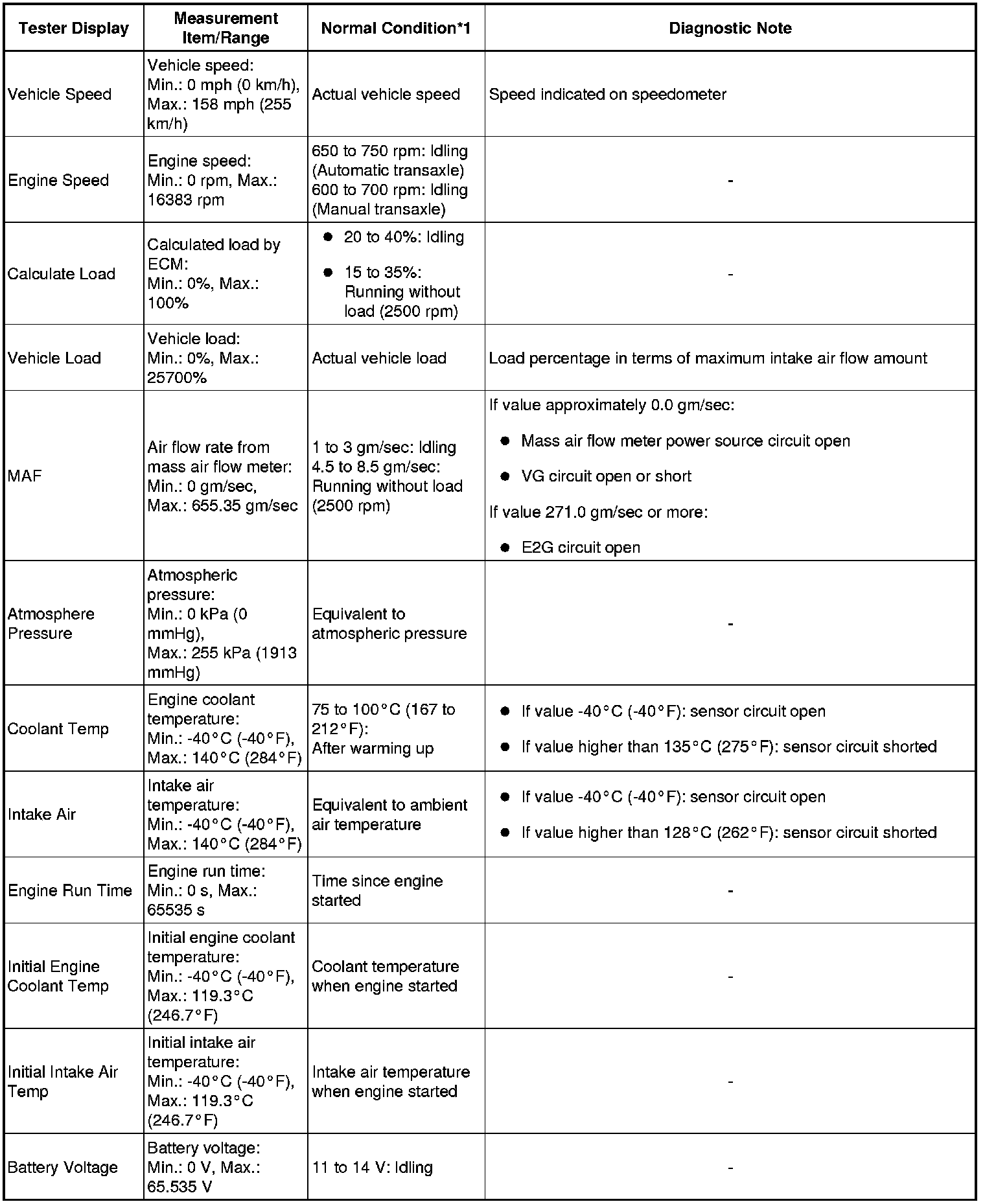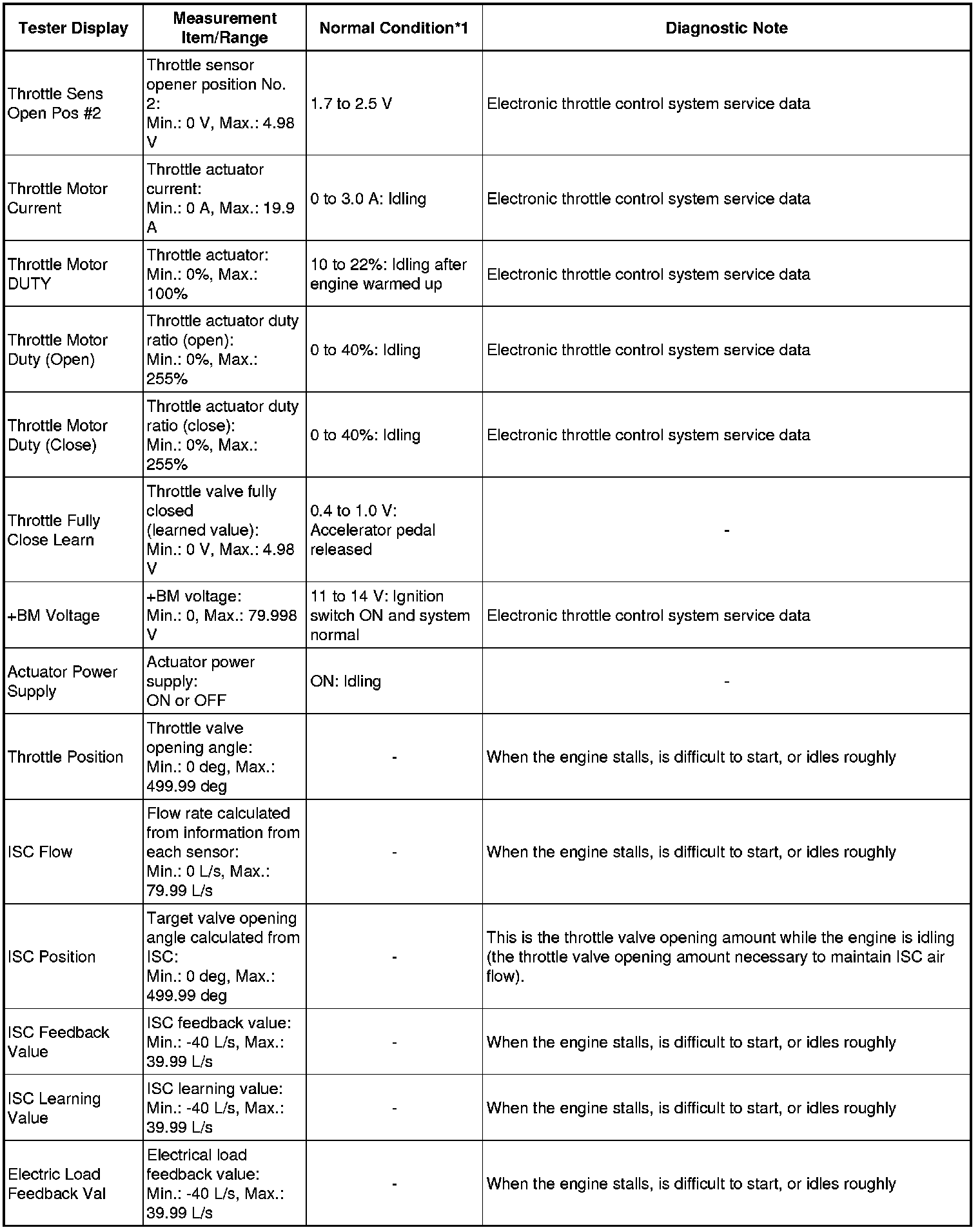 * *1: If no idling conditions are specified, the shift lever should be in N (neutral) or P, and the A/C switch and all accessory switches should be off.