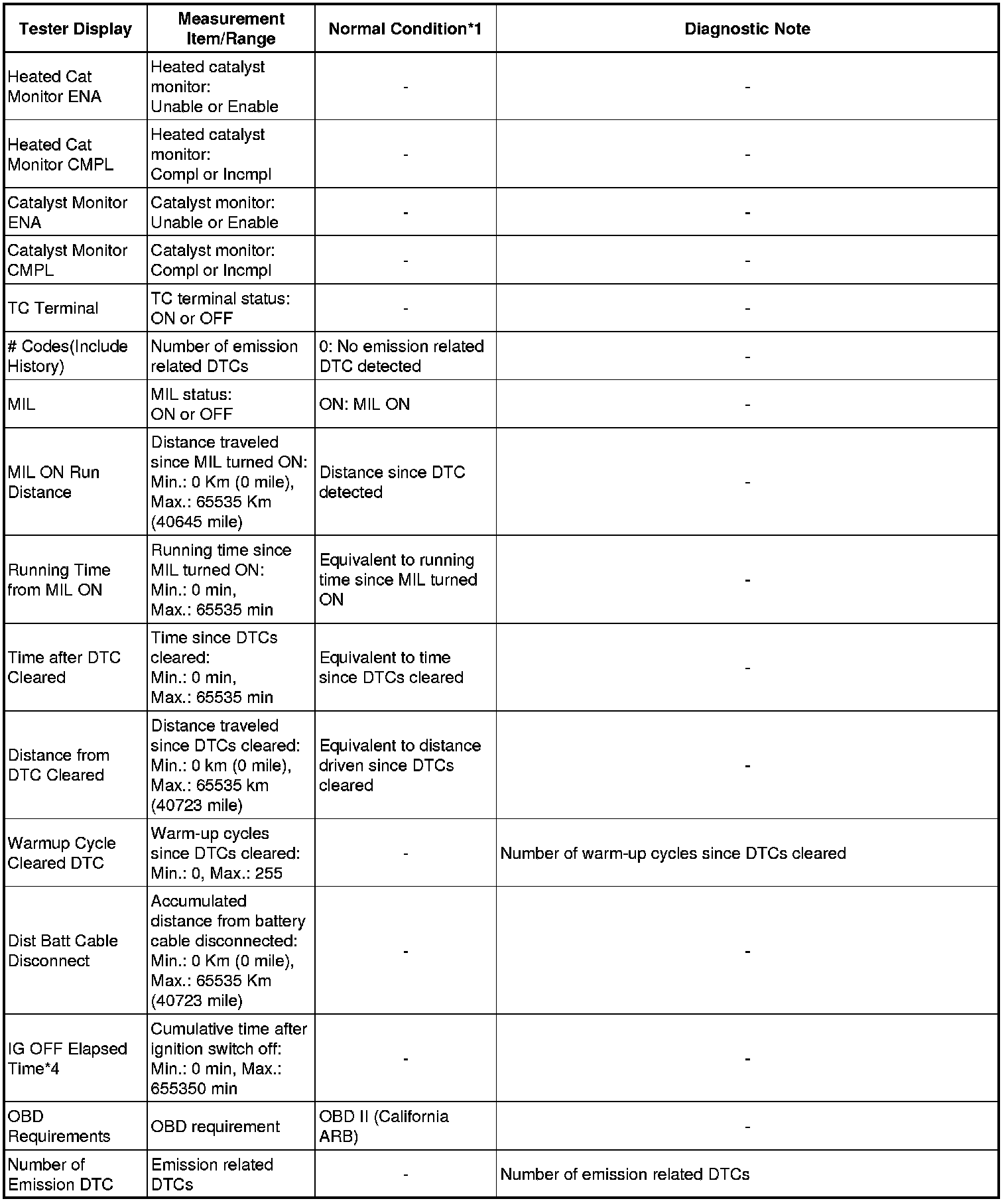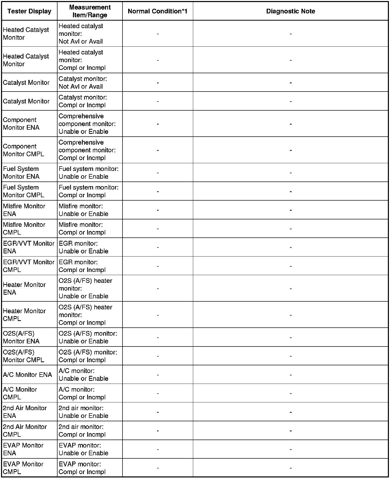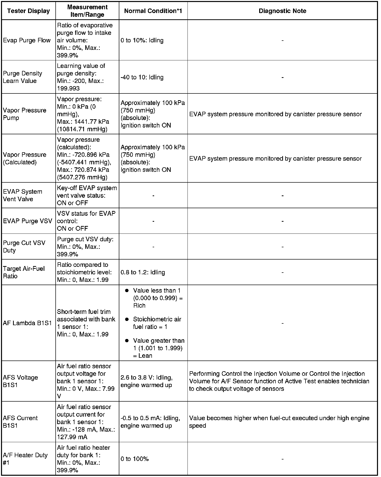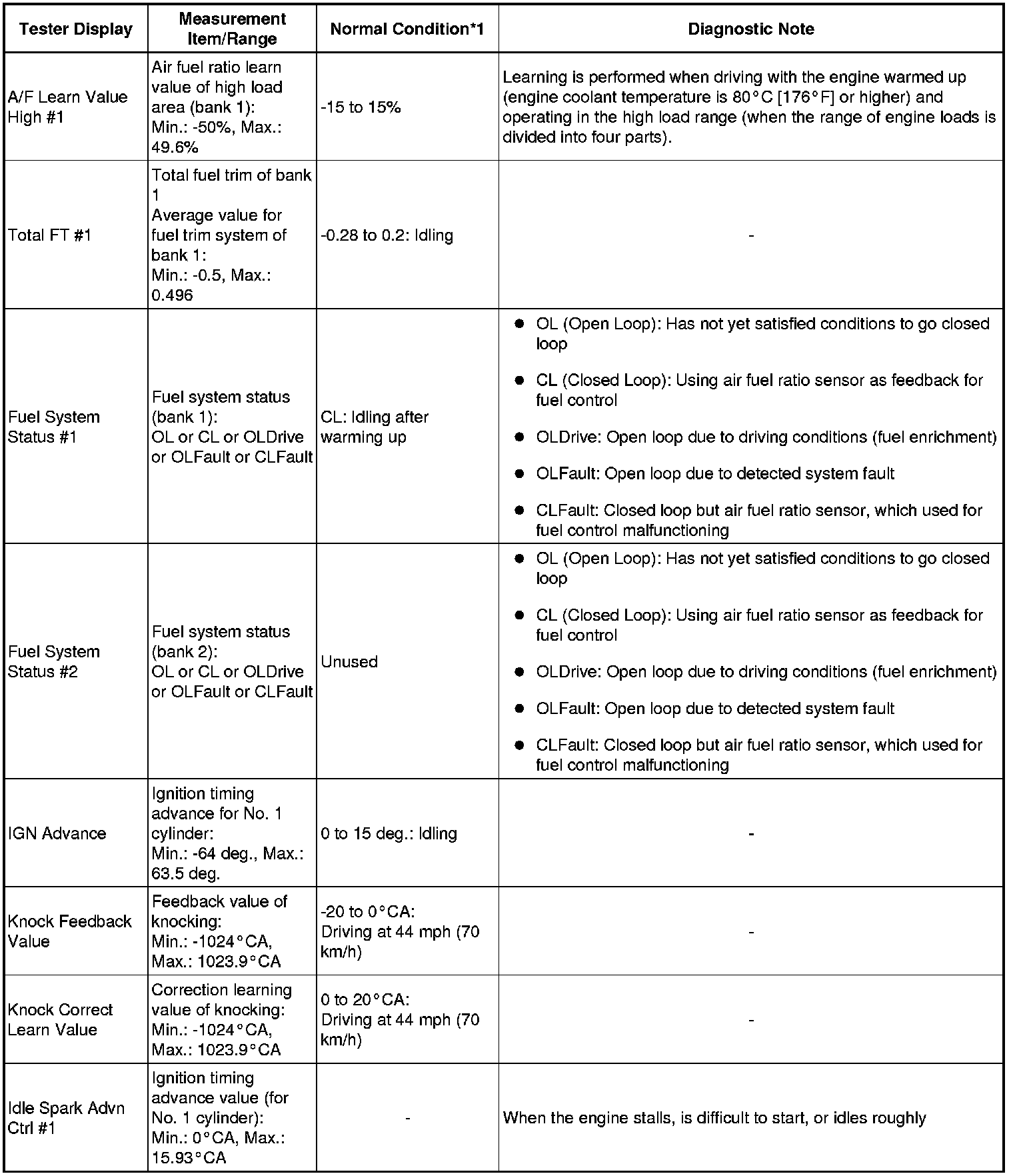 * *1: If no idling conditions are specified, the shift lever should be in N (neutral) or P, and the A/C switch and all accessory switches should be off.