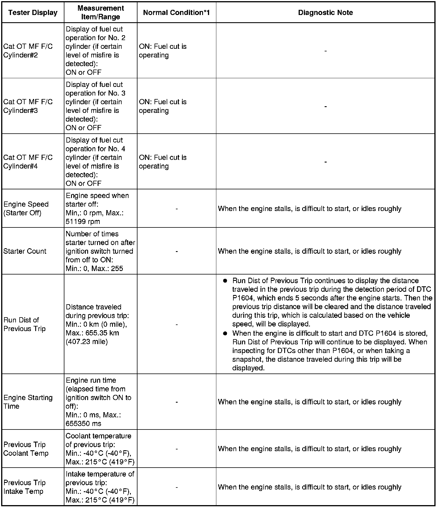 *2: When cranking the engine, each cylinder measures the engine speed.