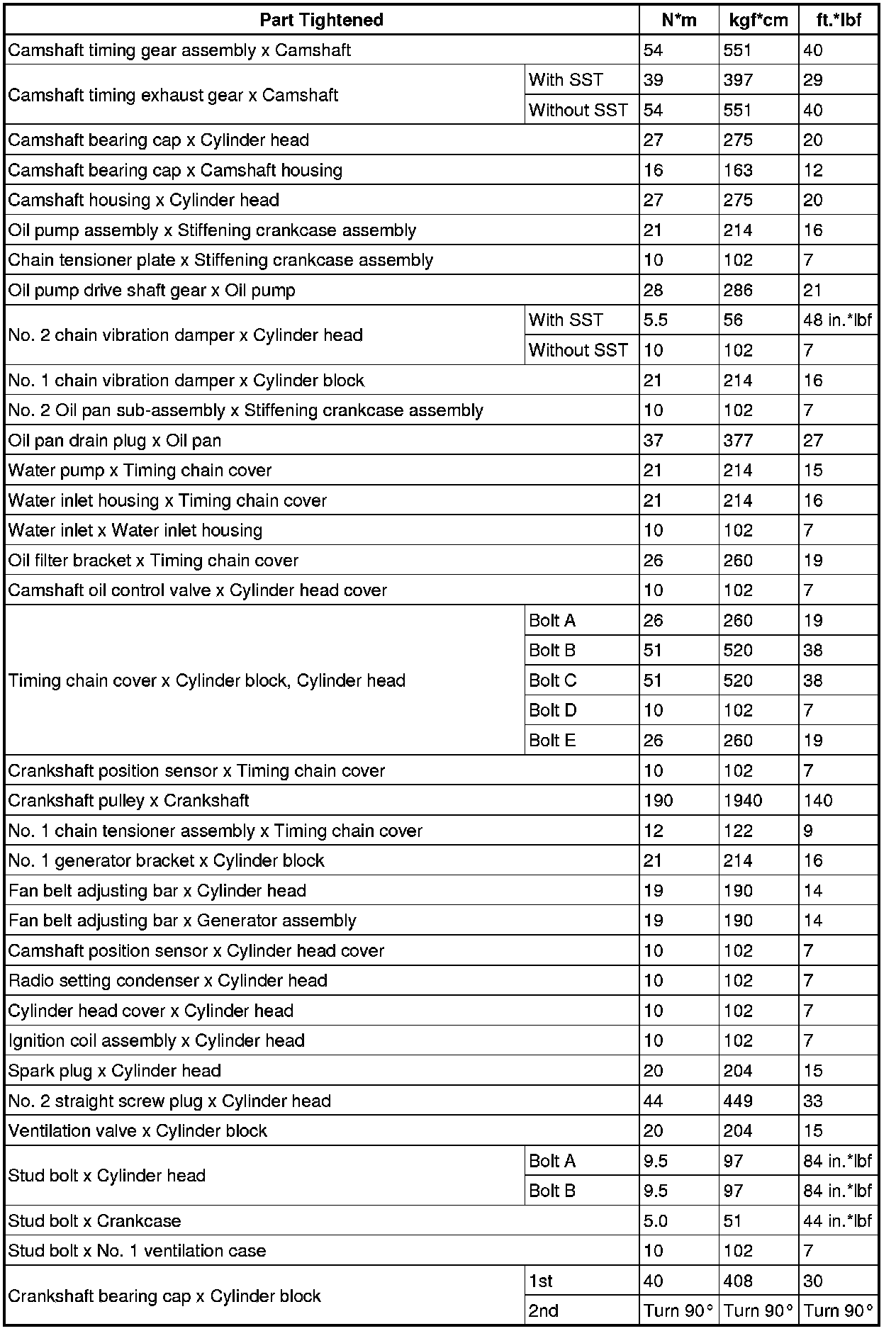 SPECIFICATIONS: 2ZR-FE ENGINE MECHANICAL: TORQUE SPECIFICATIONS