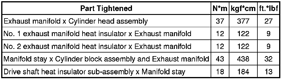 SPECIFICATIONS: 2ZR-FE INTAKE / EXHAUST: TORQUE SPECIFICATIONS