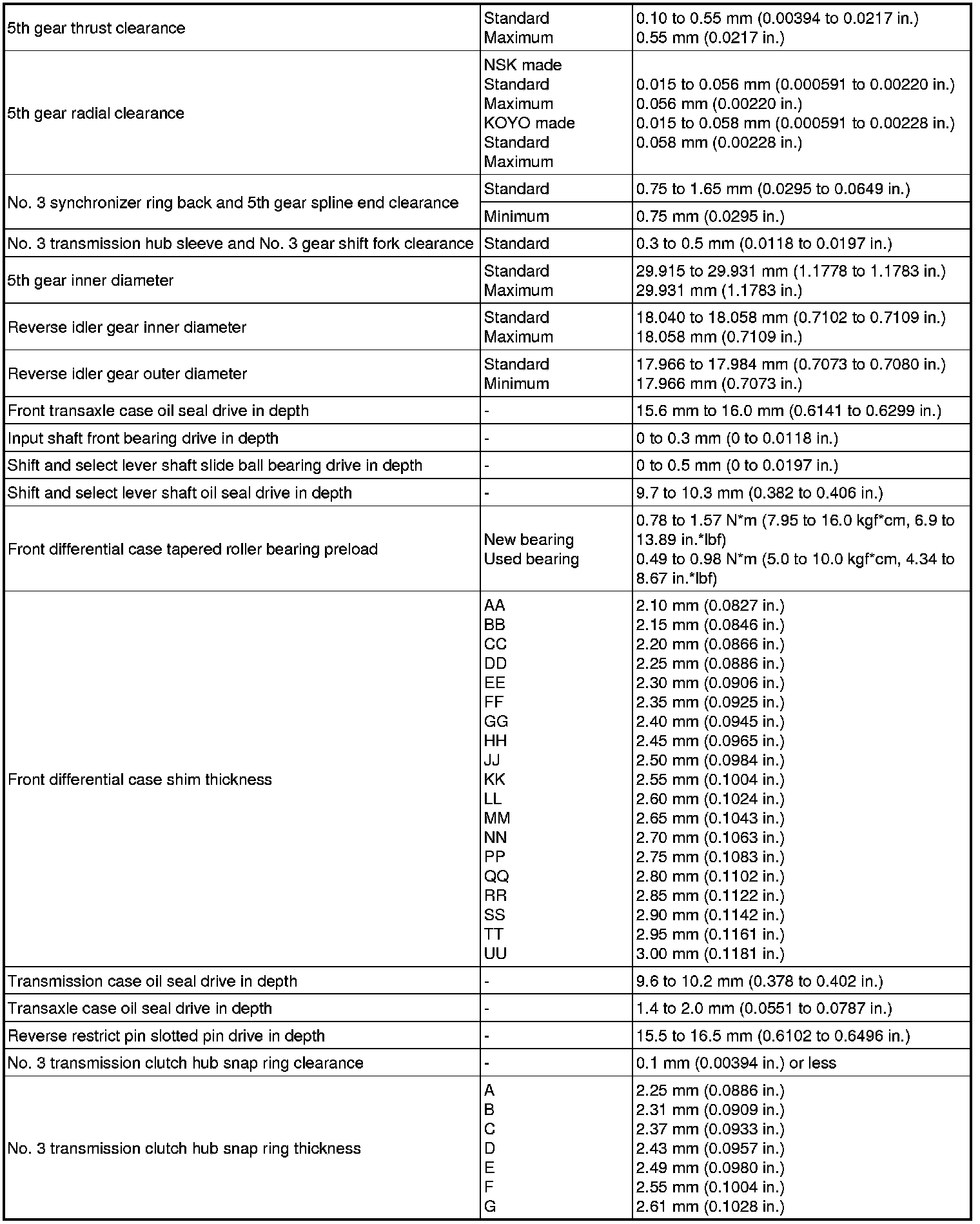 SPECIFICATIONS: C59 MANUAL TRANSMISSION / TRANSAXLE: SERVICE DATA