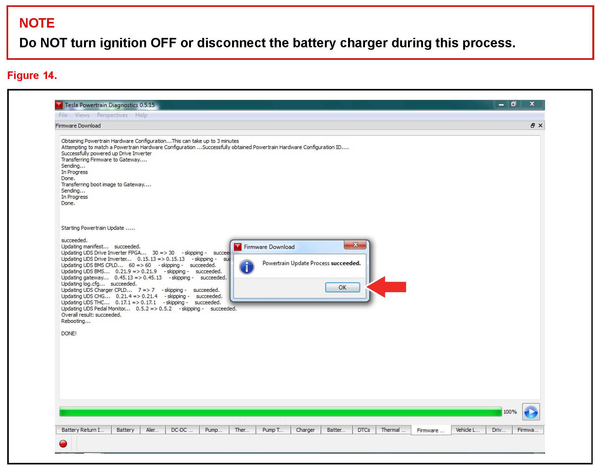 Launch the Tesla Powertrain Service Diagnostics program and initiate the update process to complete the reprogramming.