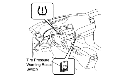 Set tire pressure within the specified range before initializing. DO NOT push the reset switch without adjusting tire inflation pressure of all 4 tires. Otherwise, the low tire pressure warning light may not come on even if the tire pressure is low, or it may come on when the tire inflation pressure is actually normal. If you push the reset switch while the vehicle is moving, initialization is not performed.