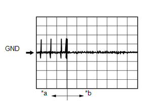 TEXT IN ILLUSTRATION*a Before lock or unlock button of electrical key transmitter sub-assembly pressed *b After lock or unlock button of electrical key transmitter sub-assembly pressed WAVEFORM 7 (REFERENCE)Item Content Tester Connection G53-6 (RDAM) - G55-1 (E) Tool Setting 5 V/DIV., 500 ms/DIV. Condition Proceed: - Power switch off