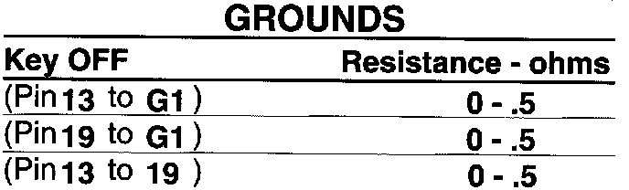 CAUTION: WHEN MEASURING OHMS DISCONNECT THE ECU FROM THE HARNESS PLUG AND NEVER TURN THE IGNITION KEY ON. IT IS P0SSIBLE THAT FAILURE TO FOLLOW THESE STEPS WILL RESULT IN DAMAGE TO THE ECU.