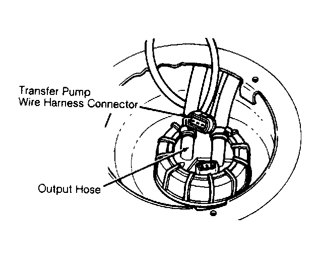 5. Remove fuel pump relay jumper wire. Disconnect and plug transfer pump output hose. Attach a hose to pump outlet connector and place other end of hose in a graduated container. Activate fuel pump for 10 seconds.