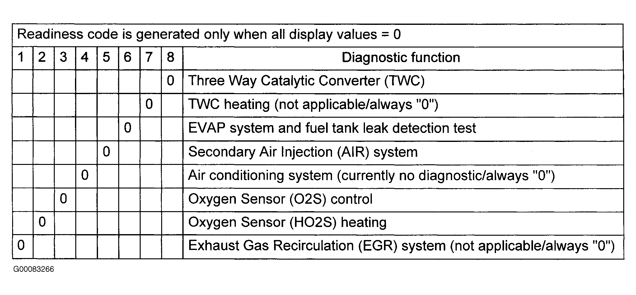 NOTE: Not all eight diagnostic functions in Readiness Code are used. See Figure .