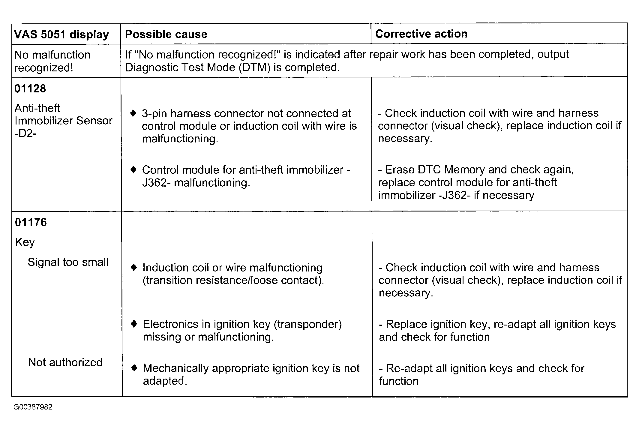 Home >> Volkswagen >> 2001 >> EuroVan Base >> Repair and Diagnosis (Single Page) >> Accessories & Equipment >> Anti-Theft Systems >> Engine Immobilizer System >> Self-Diagnostic System >> Diagnostic Trouble Code (DTC) Memory, Checking (Function 02) >> Diagnostic Trouble Code (DTC), Table