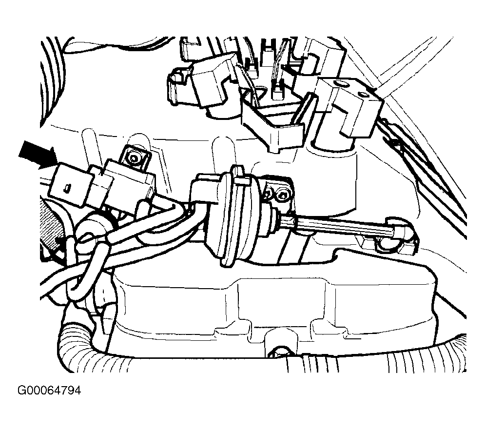 1. Verify battery voltage is a minimum of 11.5 volts and all fuses are okay. Repair as necessary. Start engine and let idle. Using a second technician, briefly depress accelerator pedal. Check for movement of vacuum actuated IMT linkage and shaft (shaft is located in intake manifold). See Fig 1 . Vacuum actuated IMT linkage and shaft should move, temporarily closing off long manifold runners. Turn engine off. If vacuum actuated IMT linkage and shaft function properly, IMT system is okay. If vacuum actuated IMT linkage and shaft do not operate properly, go to next step.